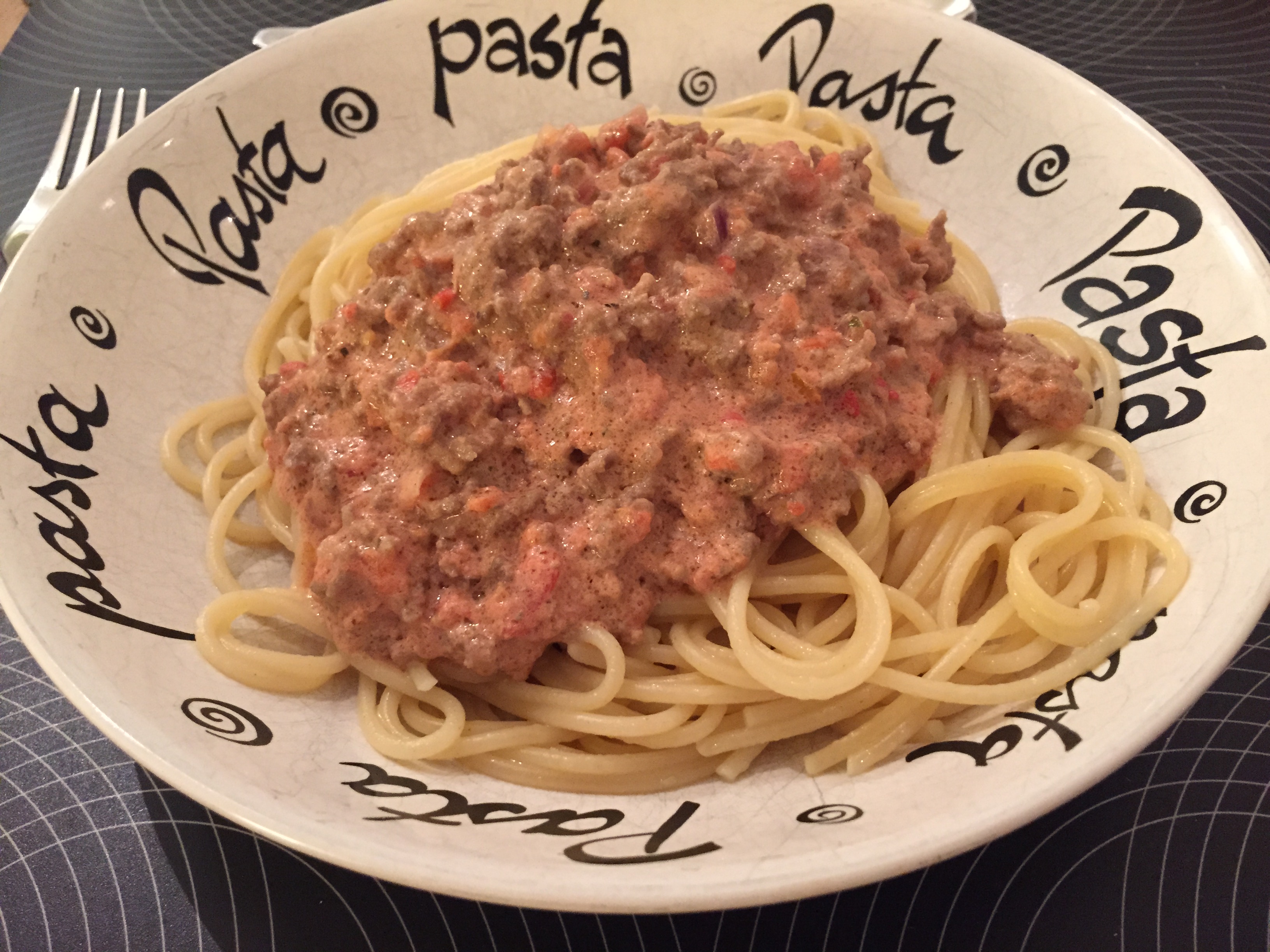 - Rör ut tomatpurén i grädden och häll i pannan.